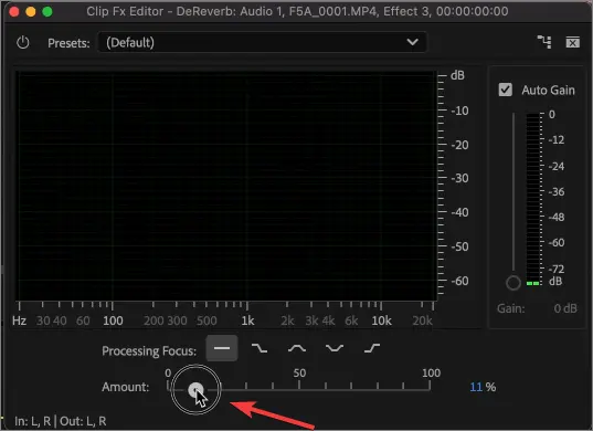 2. Focus (Фокус): Установите Center (Центр). Это гарантирует, что эффект будет равномерно применяться ко всему спектру звука.