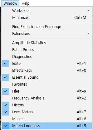 2. Перейдите в Window -> Нормализация громкости (Match Loudness).