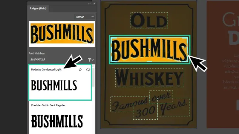 3. Illustrator анализирует начертание и предлагает подходящие шрифты из Adobe Fonts или установленных на ПК.