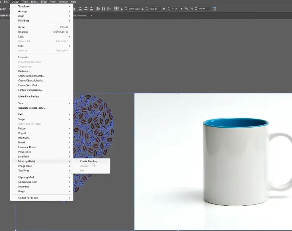 Инструмент анализирует геометрию растрового изображения. Если вы накладываете вектор на фотографию кружки, Illustrator «видит» цилиндрическую форму и автоматически деформирует векторный объект так, чтобы он огибал поверхность.