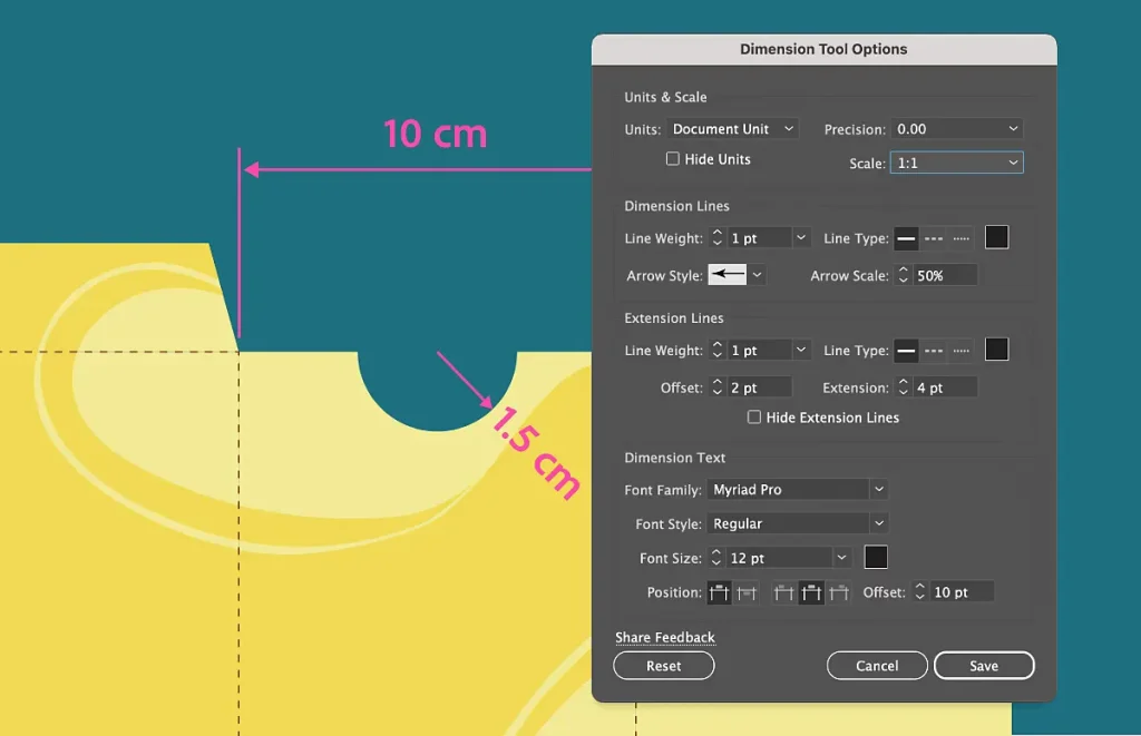 Для тех, кто использует Illustrator для создания чертежей, схем упаковки или выкроек, инструмент Dimension Tool стал спасением. Раньше для простановки размеров приходилось использовать скрипты или вручную рисовать стрелочки и подписывать цифры.
