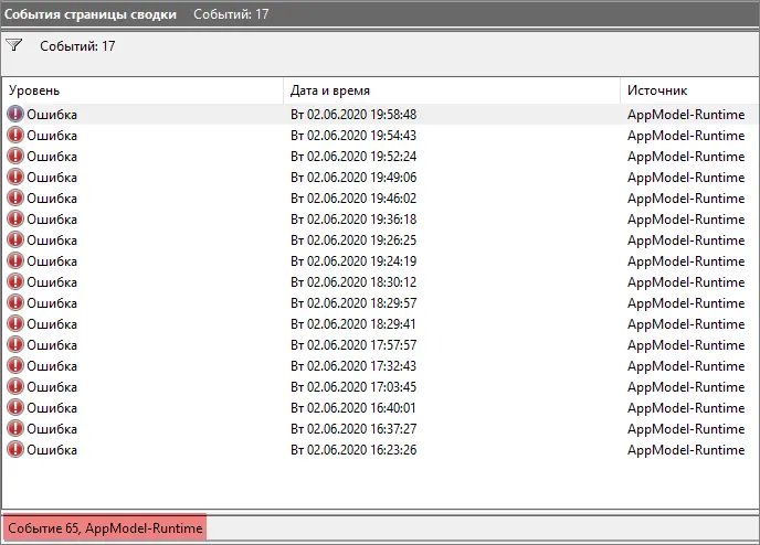 Для начала рекомендуется открыть Просмотр событий Windows (Event Viewer) и перейти в раздел Приложение и службы → Microsoft → Windows → AppModel-Runtime → Admin. Здесь можно увидеть конкретные коды ошибок и время возникновения. Это поможет определить, какие именно приложения вызывают сбой.