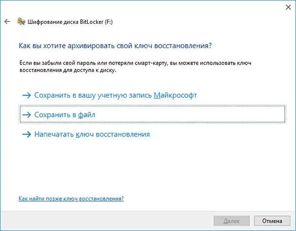 4. Сохраните ключ восстановления — можно в облаке Microsoft, на USB или распечатать.