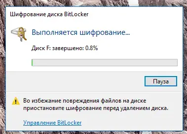 Во время шифрования можно продолжать работу, однако рекомендуется подключить ноутбук к сети питания.