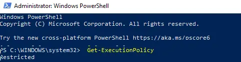Execution Policy определяет, какие скрипты могут запускаться на компьютере. Чтобы посмотреть текущую политику, выполните:
