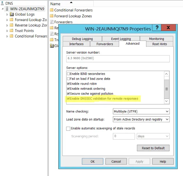 – В зависимости от версии Windows Server можно включать DNSSEC (расширения безопасности DNS).