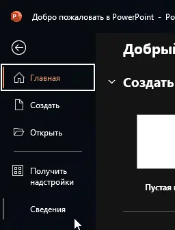1. Зайдите во вкладку Файл, раздел Сведения.