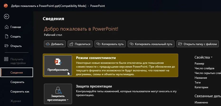 Способ 5. Конвертация в формат PPTX из старого PPT