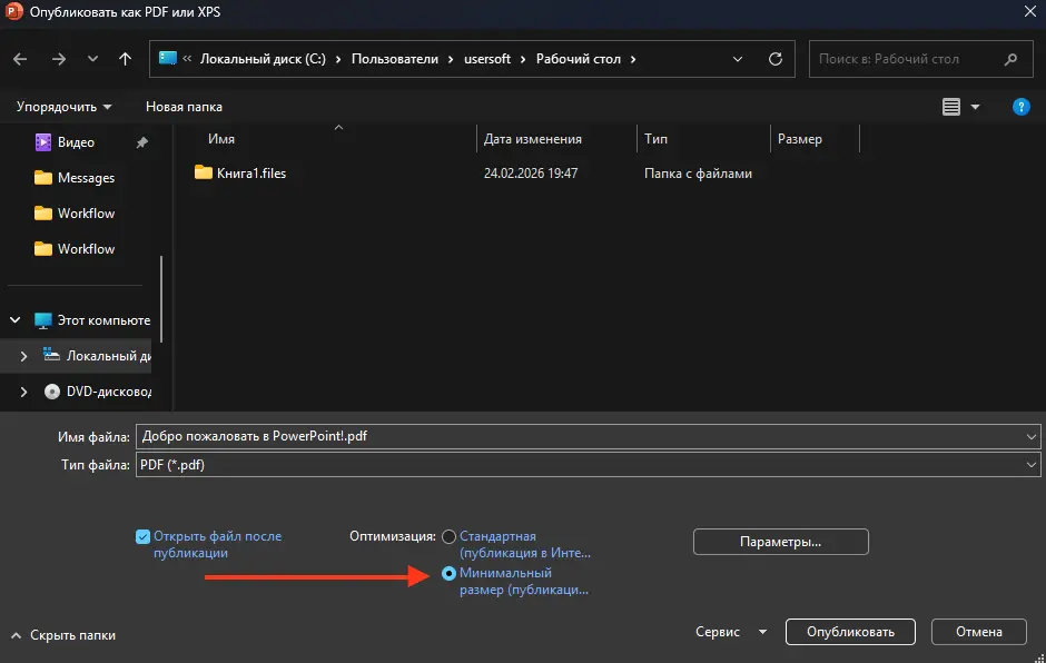 Если же вам нужен именно формат PowerPoint, можно воспользоваться сторонними утилитами, такими как NXPowerLite или онлайн-сервисом SmallPDF, которые специализируются на глубокой очистке документов MS Office.