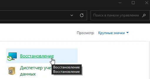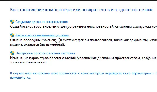 – Откройте «Панель управления» → «Восстановление» → «Запуск восстановления системы».