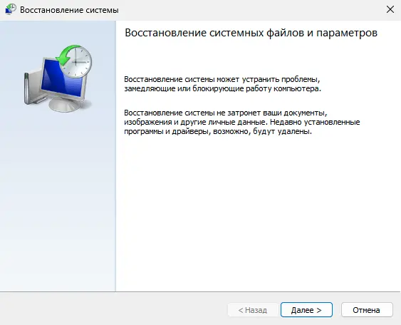 Если сбой возник недавно, попробуйте откатить систему к предыдущему состоянию: