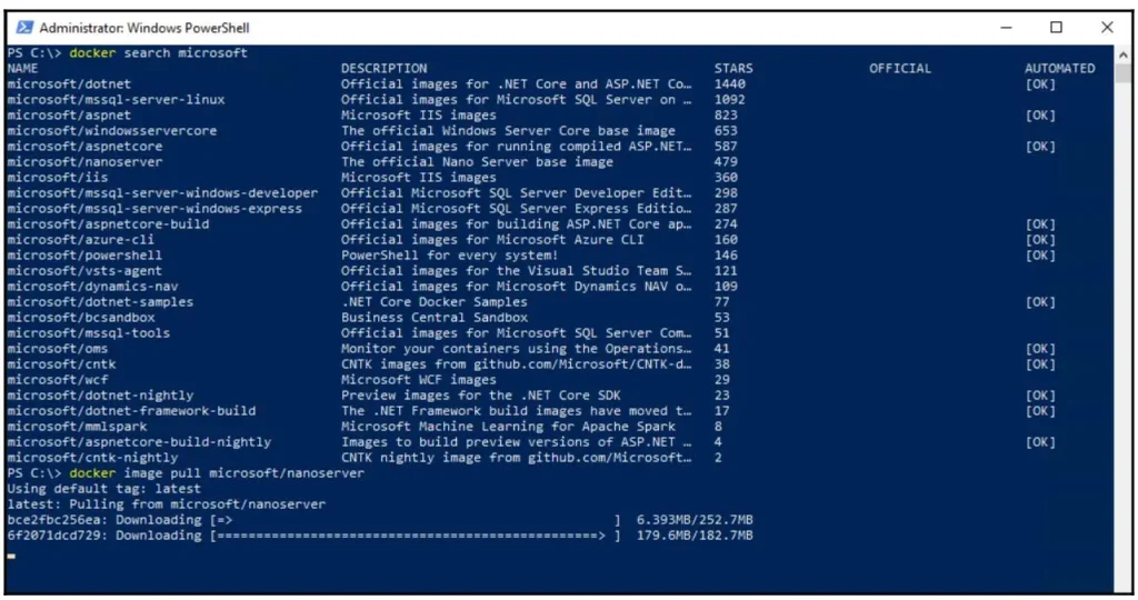 – Образ (image) — шаблон, из которого создаются контейнеры. Образы могут базироваться на Nano Server, Server Core или полном Windows Server образе.