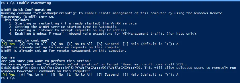 После выполнения команда PowerShell Remoting будет готова к работе.