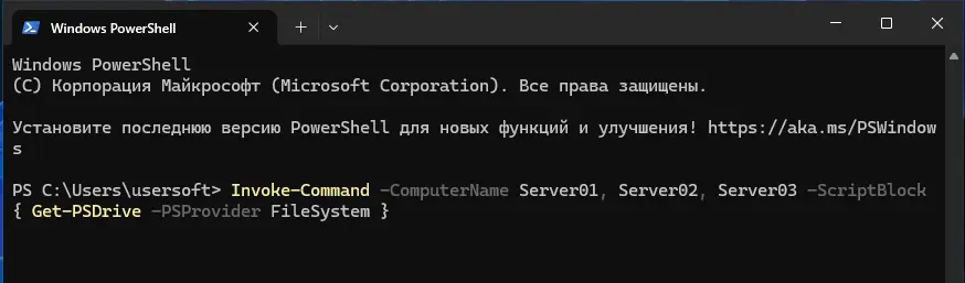 PowerShell Remoting особенно полезен для массовых операций. Например, получение информации о дисках сразу с нескольких серверов: