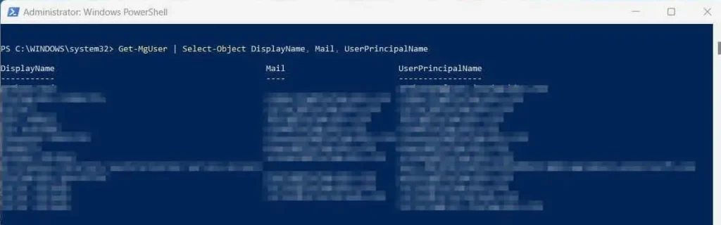 Get-MgUser | Select-Object DisplayName, UserPrincipalName