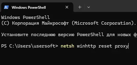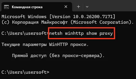 4. Если там указан IP-адрес прокси, и вы не настраивали его специально, сбросьте настройки командой: