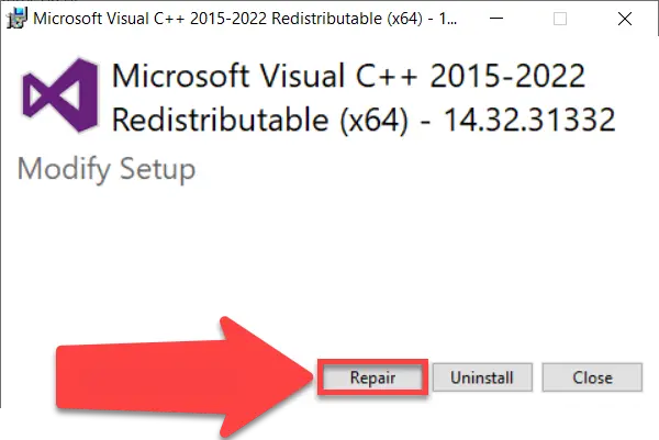3. Даже если они у вас установлены, запуск инсталлятора предложит кнопку «Repair» (Исправить) — воспользуйтесь ей.