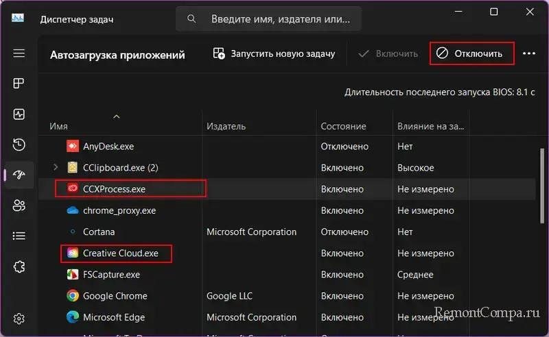 2. Убедитесь, что процесс не висит в фоне. Нажмите Ctrl + Shift + Esc, чтобы открыть Диспетчер задач, и завершите все процессы, связанные с Adobe (Creative Cloud, CCXProcess, CoreSync).