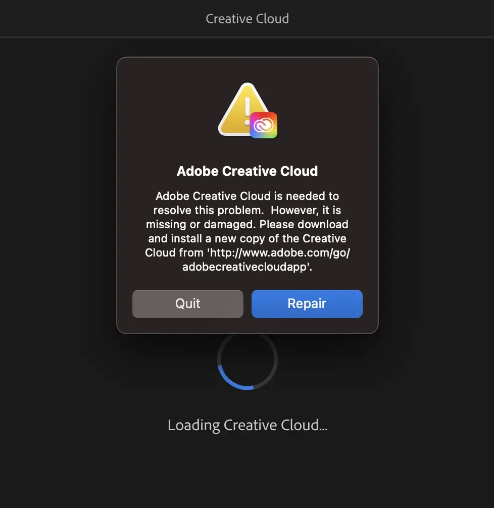 Если удаление кэша не помогло, возможно, повреждены сами исполняемые файлы программы. Вам не нужно скачивать всё заново — у Adobe есть встроенный механизм «лечения».