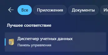 1. Нажмите «Пуск» и начните вводить «Диспетчер учетных данных» (Credential Manager).