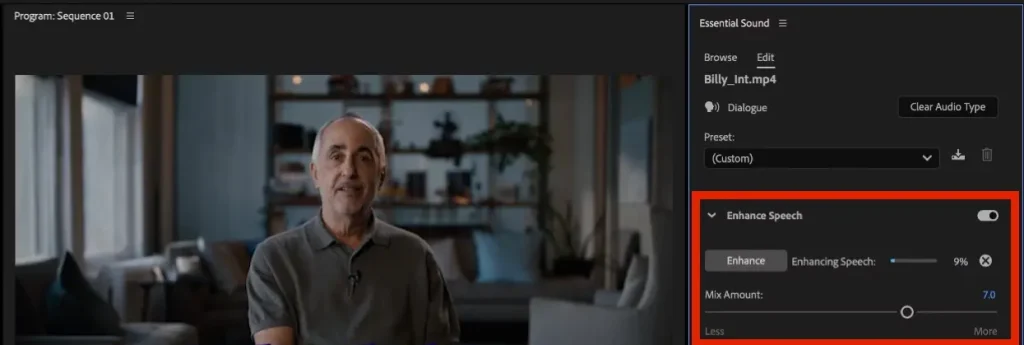 Инструмент Enhance Speech — это революционная функция для обработки аудио. Он использует ИИ для очистки диалога от фонового шума, эха и реверберации, делая речь четкой и профессиональной, как будто она была записана в студии.