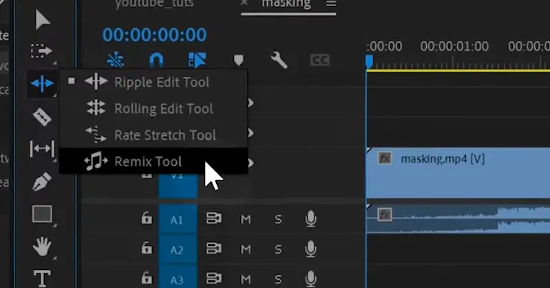 1. Применение: Выберите инструмент Remix Tool (обычно находится в группе с Ripple Edit Tool).