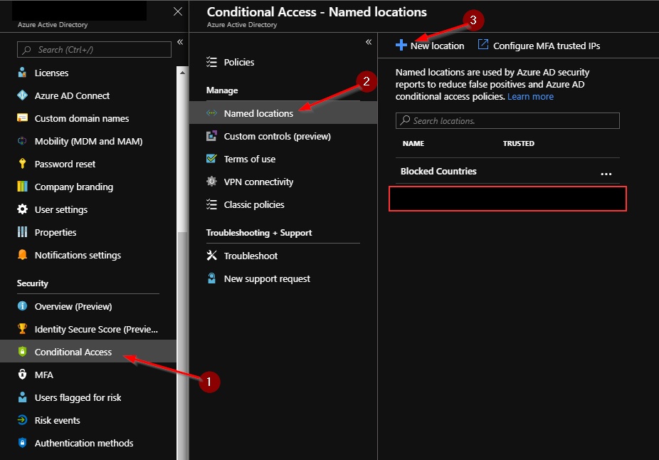 — Создайте именованное расположение (Named Location) «Blocked Countries».