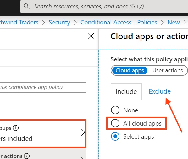 — Для максимальной защиты выберите «Все облачные приложения» (All cloud apps). Это покроет Office 365, Azure Portal, AWS (если интегрирован) и любые другие сервисы.