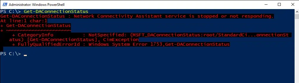 DirectAccess жестко завязан на IPv6. Если вы отключили IPv6 на сетевом адаптере сервера или клиента («для оптимизации»), DA работать не будет. Включите его обратно.