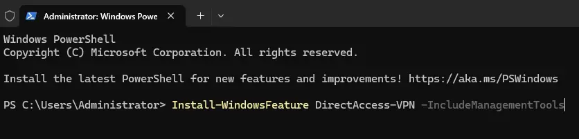 Install-WindowsFeature RemoteAccess -IncludeManagementTools