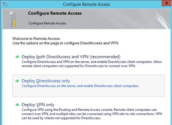 2. Выберите вариант «Deploy DirectAccess Only» (Развернуть только DirectAccess).
