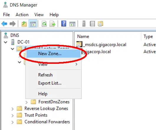 1. Откройте DNS Manager (dnsmgmt.msc).