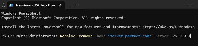 Resolve-DnsName -Name "server.partner.com" -Server 127.0.0.1