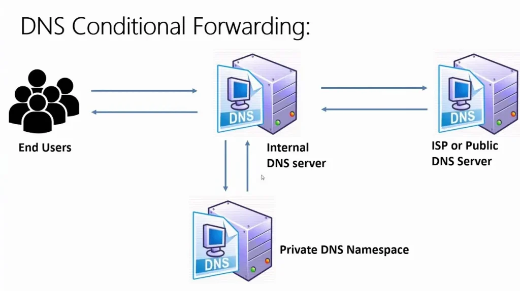 Вы создаете правило пересылки для конкретного доменного имени. Вы жестко прописываете IP-адреса DNS-серверов целевого домена.