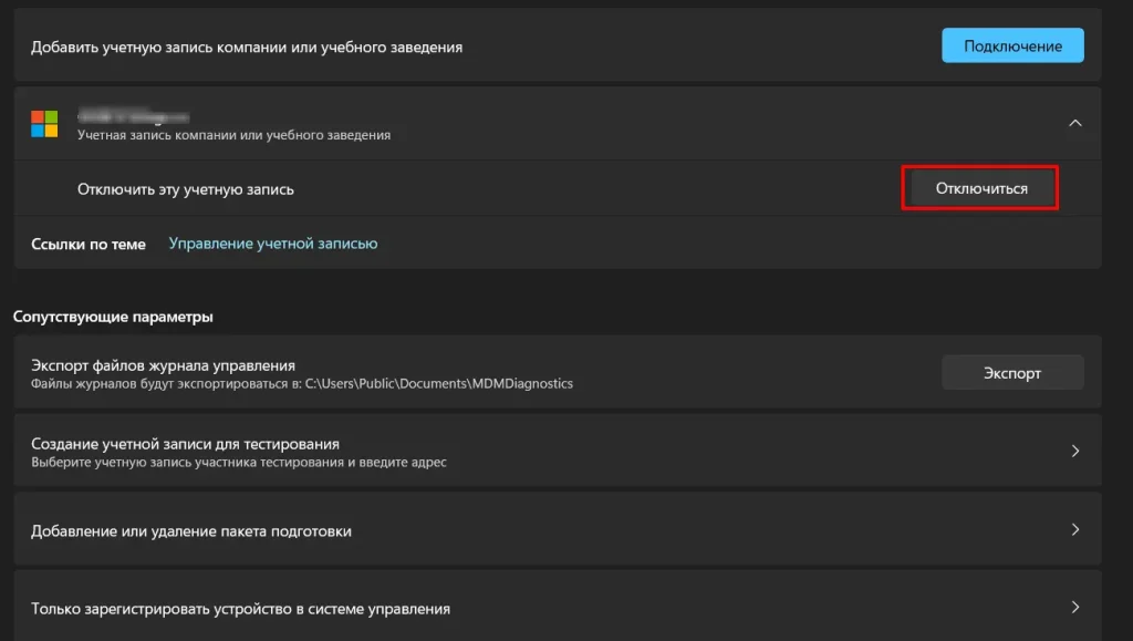 2. Выберите свой рабочий аккаунт и нажмите «Отключить».