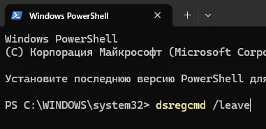 5. Либо воспользуйтесь командой PowerShell для принудительного выхода из Azure AD (только для опытных пользователей):