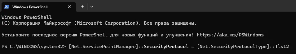 Если галочки стоят, но ошибка сохраняется, возможно, настройки шифрования (Cipher Suites) сбиты в реестре. Исправим это одной командой. Запустите PowerShell от имени администратора и выполните: