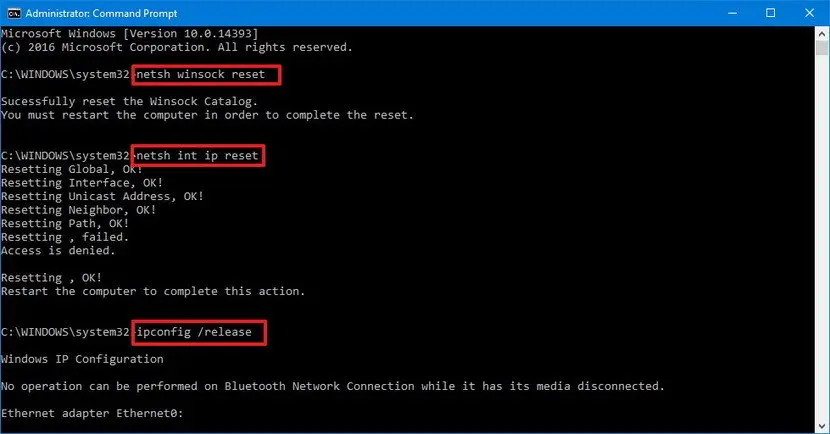 После выполнения всех команд обязательно перезагрузите компьютер. Это сбросит все сетевые адаптеры к заводским настройкам.