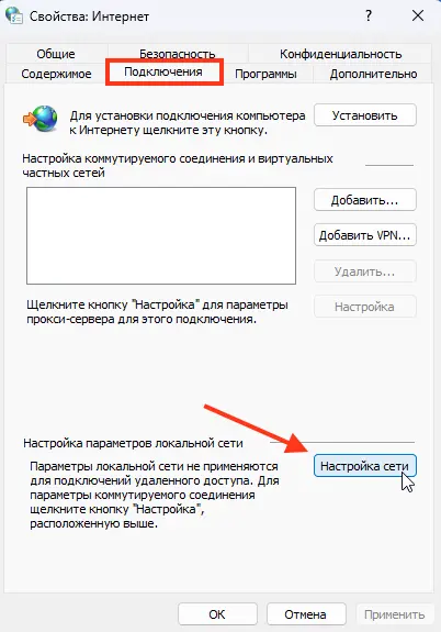 1. Нажмите `Win + R`, введите `inetcpl.cpl`.
