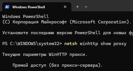 Если ответ будет «Direct access (no proxy server)», все в порядке. Если вы увидите IP-адрес — его нужно удалить командой `netsh winhttp reset proxy`.