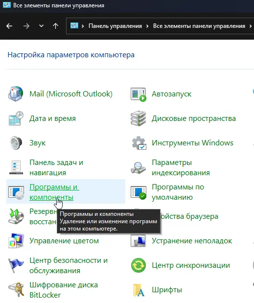 2. Перейдите в раздел «Программы и компоненты» (или «Удаление программы»).