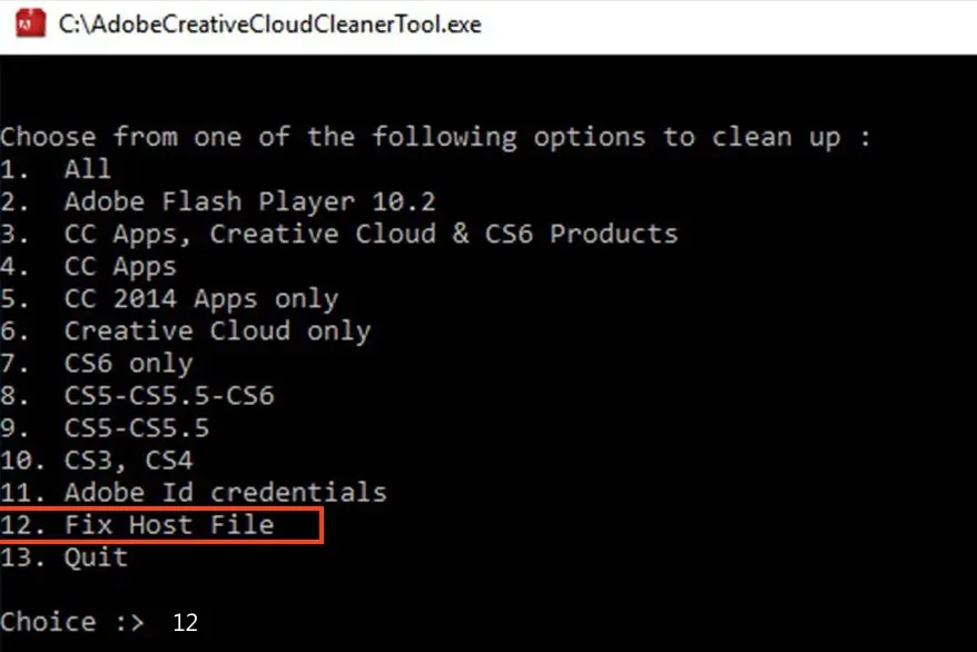 Утилита Creative Cloud Cleaner Tool, о которой мы писали в прошлых статьях, поможет вычистить конфликтующие записи лицензий. Запустите её и выберите очистку «Fix Host File».