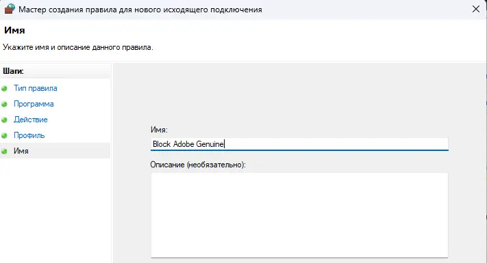 6. Назовите правило «Block Adobe Genuine».