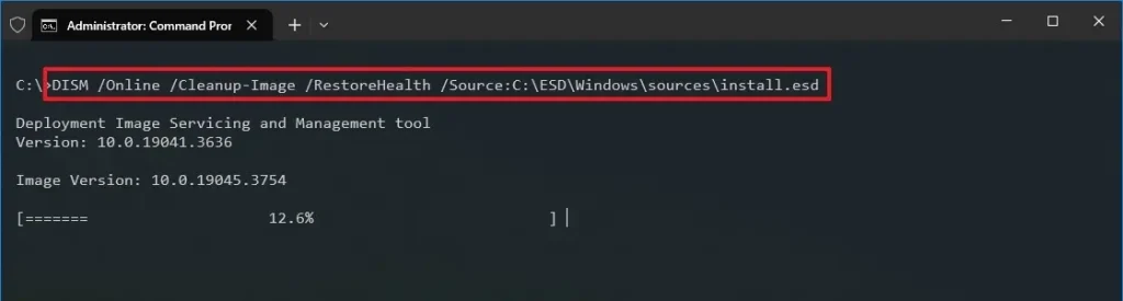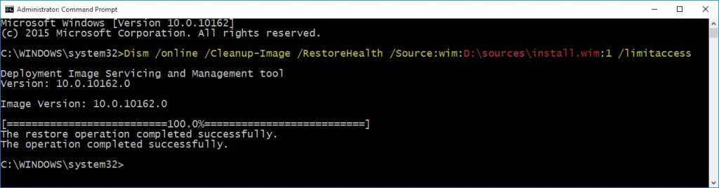 DISM /Online /Cleanup-Image /RestoreHealth /Source:esd:D:\sources\install.esd:1 /LimitAccess