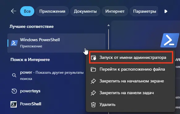 1. Запустите Командную строку или PowerShell от имени Администратора.