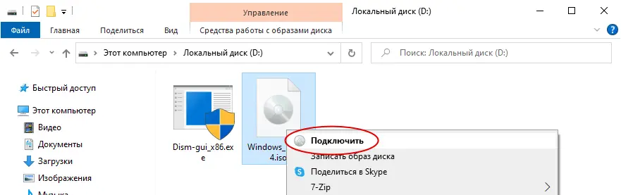 2. Смонтируйте ISO-образ. В большинстве версий Windows достаточно дважды кликнуть по файлу ISO, и он смонтируется как виртуальный диск (например, D:).