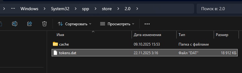 Если вы уверены в правильности пути и ключа, но ошибка сохраняется, вероятно, повреждена сама база данных службы защиты ПО Windows. В этой базе (Tokens.dat) хранятся все цифровые лицензии Windows и Office.