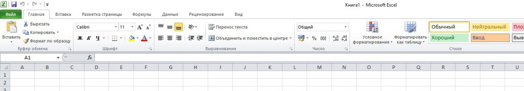 После установки дополнения, можете снова открыть любое приложение Офиса, к примеру Exel, оно должно быть уже на нужном Вам языке, в нашем случае — на русском.