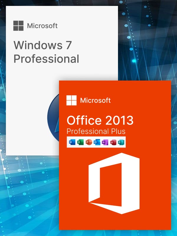 Windows 7 Professional + Office 2013 Professional Plus — это выгодное предложение, включающее два бессрочных лицензионных ключа: для операционной системы Windows 7 Professional и офисного пакета Microsoft Office 2013 Professional Plus. Оба ключа предназначены для одного устройства (ПК) и сохраняются при переустановке на том же устройстве. Покупка комплекта позволяет сэкономить по сравнению с приобретением лицензий по отдельности.